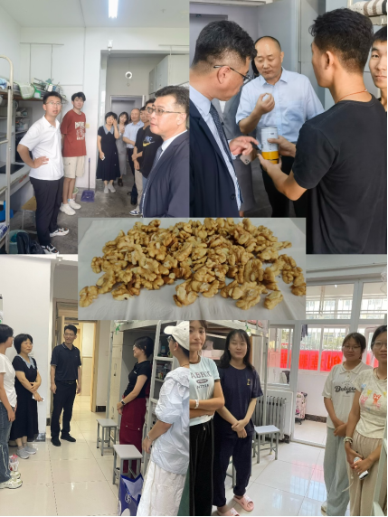 党委书记亓慧、副书记章敏及辅导员老师们来到新生宿舍,关心新生入学适应情况,叮嘱大家在校注意安全,珍惜大学时光,以饱满的热情和最好的状态开启大学生活。硕士新生郭旭藏不住内心的喜悦,拿出从家里带来的土特产——核桃分享给领导、老师以及舍友们,生动流露出与老师和同学们相遇时的幸运和欣喜。