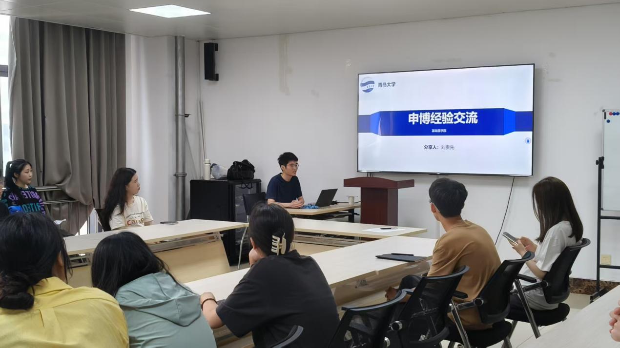 在医学教育综合楼B810举办研究生申博经验交流会,邀请周莎、刘贵先、袁小苏三位成功申博的优秀毕业生分享经验。