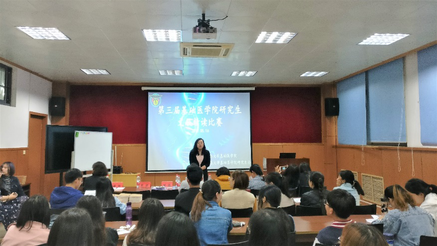 第三届研究生文献精读比赛决赛在博雅楼103会议室举行,比赛由孙婷同学主持,院党委副书记戚昕致开幕词,侯琳、张蓓、于晓玲、董静、王俊、徐华敏、陈鹏7位教授担任评委,2018级近百名研究生到场观看与交流,6686体育官网