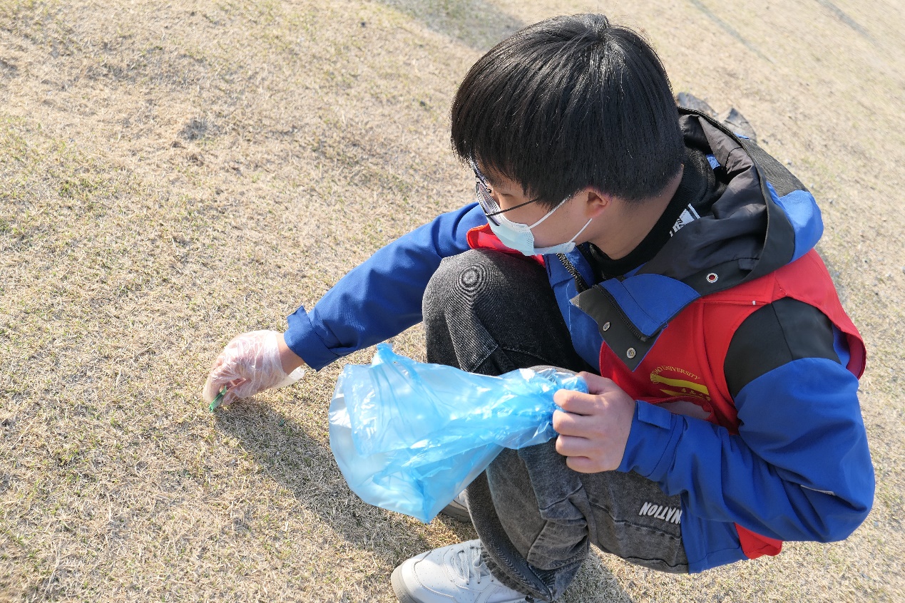 18名志愿者在活动负责人隋云杰的带领下,到达小麦岛开展“地毯式”清理,捡拾草坪和路面上的游客垃圾,清除海岸边的塑料垃圾,对死角环境卫生进行清洁。各位志愿者发扬不怕脏、不怕苦、不怕累的精神,分工协作、干劲满满,配合默契,秩序井然。我院青年志愿者用实际行动,向前往观光游玩的游客们传递卫生文明精神,引导游客不乱扔垃圾,为共建美丽整洁的小麦岛贡献自己的青春力量。通过大家的共同努力,小麦岛重新恢复整洁鲜亮,绿化带里充满了春的生机。