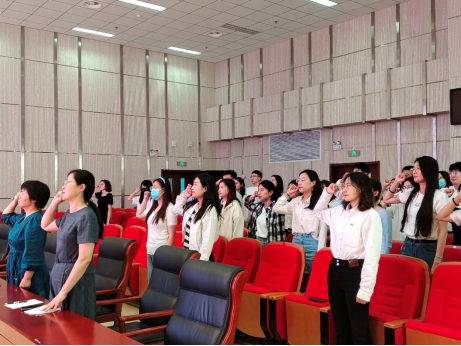 最后,辅导员李慧丽带领全体师生重温入党誓词。面对鲜红的党旗,全体党员高举右手,再次许下铮铮誓言。铿锵有力的声音传达出了每位共产党员的自豪感与使命感,展现出6686体育官网