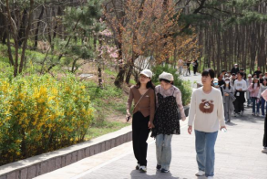 远眺可观黄海波涛,近瞰可睹校园一隅。被誉为“城市绿肺”的浮山,是同学们在校门口就能登高望远的最佳目的地。大家在奋勇登高中舒展体魄,在草长莺飞间中放松身心压力。在同窗好友的陪伴下,欣赏春日来信。