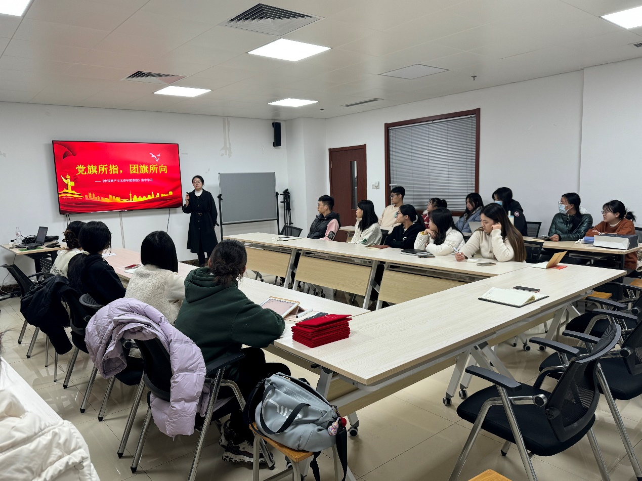 团委老师李慧丽带领全体学生骨干集中学习《中国共产主义青年团章程》,阐述了共青团作为中国共产党领导的先进青年群团组织,在引领凝聚青年、组织动员青年、联系服务青年方面的重要作用。共青团必须始终坚持“党旗所指就是团旗所向”,把培养社会主义建设者和接班人作为根本任务,把巩固和扩大党执政的青年群众基础作为政治责任。通过此次学习,大家深刻认识到,作为新时代的青年,要自觉践行社会主义核心价值观,以聪明才智贡献国家,以开拓进取服务社会,让青春在为祖国、为民族、为人民的不懈奋斗中绽放绚丽之花。