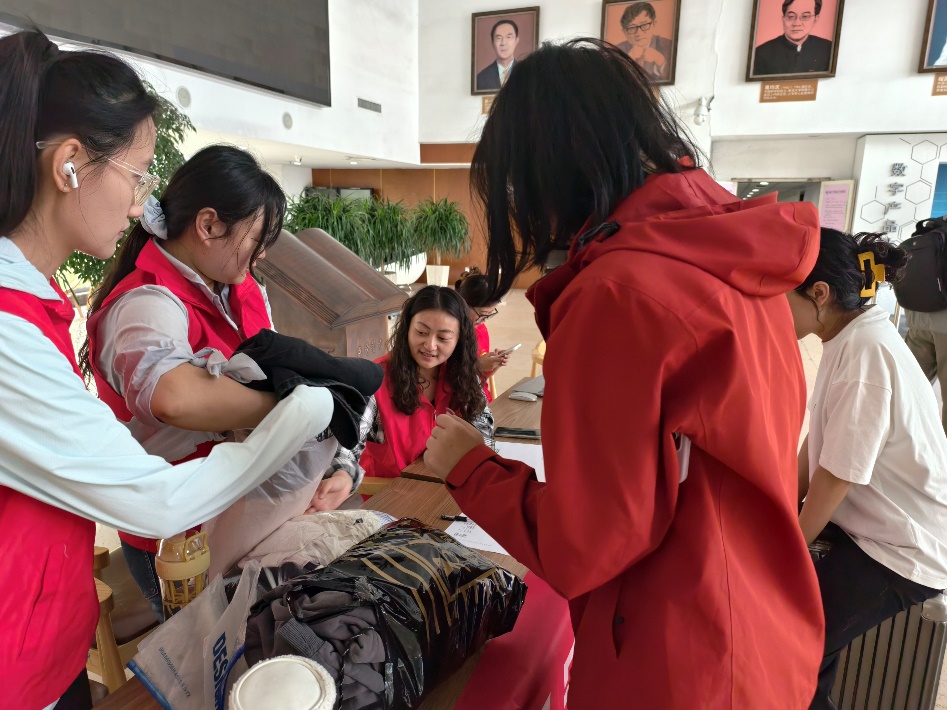 活动现场,志愿者们早早布置好捐赠点位,热情接待每一位前来咨询的师生。通过细致讲解旧衣回收的环保意义与社会价值,激发了更多人的参与热情。师生们纷纷驻足,将清洗整洁的衣物郑重交付,让闲置物品焕发新生。