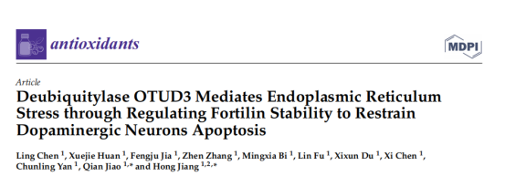 姜宏教授团队于《Antioxidants》(中科院期刊分区2区,IF=7.765)在线发表了题为Deubiquitylase OTUD3 Mediates Endoplasmic ReticulumStress through Regulating Fortilin Stability to Restrain Dopaminergic Neurons Apoptosis的研究成果。该研究得到了国家自然科学基金委、山东省自然科学基金委、山东省科技厅和泰山学者工程等的资助。6686体育官网