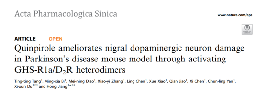 姜宏教授和杜希恂副教授于药理学领域权威期刊《Acta Pharmacologica Sinica》(中科院期刊分区1区,IF=7.169)在线发表了题为Quinpirole ameliorates nigral dopaminergic neuron damage in Parkinson's disease mouse model through activating GHS-R1a/D2R heterodimers的研究成果。该研究得到了国家自然科学基金委、山东省自然科学基金委和泰山学者工程等资助。6686体育官网