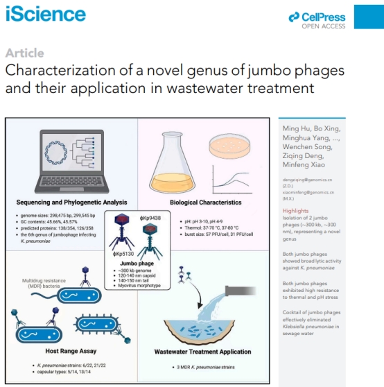 特种医学系胡明副教授课题组在应用噬菌体处理多重耐药细菌方面的研究取得新进展,研究成果以“Characterization of a novel genus of jumbo phages and their application in wastewater treatment”发表在Cell旗下新晋子刊“iScience”上(中科院2区,IF=6.17,DOI:10.1016/j.isci.2023.106947)。该项目由青岛大学、深圳华大基因研究院、北京华大基因研究院、昆山杜克大学等多家单位合作完成。6686体育-6686体育app-6686体育官网
