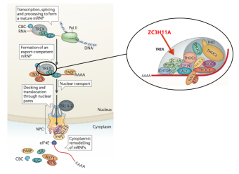 人巨细胞病毒(HCMV)是一种疱疹病毒,通过多种机制参与肿瘤的发生发展。ZC3H11A(ZC3)是一种应激诱导的核蛋白,该课题组之前的研究表明在应激条件下ZC3具有调节mRNA核输出的作用。该研究报道了ZC3在泛癌中的深入分析和ZC3的组学数据,研究结果表明在HCMV感染后,与mRNA加工相关的基因集上调,同时ZC3的mRNA和蛋白水平的表达均上调,但ZC3蛋白的增加并没有伴随着mRNA水平的显著升高,与ZC3相关的蛋白主要聚类于参与mRNA加工的蛋白集合。ZC3的高表达与多数癌症的不良预后有关。 研究为新的mRNA输出蛋白ZC3在HCMV感染和癌症进展中的作用提供了有价值的见解。这些结果为下一步研究ZC3在病毒感染肿瘤中的调控机制奠定了基础。